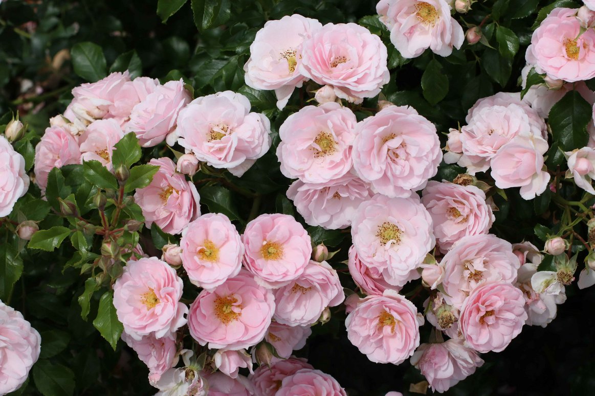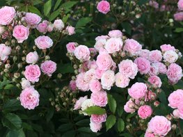 Die Kleinstrauchrose Pashmina® (Kordes, Einführung 2023) zeigt einen breitbuschigen Wuchs und wirkt mit ihren bogenförmigen, überhängenden Trieben sehr filigran. Die Rambler-Abstammung ist dabei unübersehbar. Die Sorte ist nur gering bestachelt und ihre rote Triebe bilden einen schönen Kontrast zum mittelgrünen, leicht glänzenden Laub. Kleine, gefüllte Blüten stehen in dicht gepackten Dolden. Die zartrosa, weiß verblassenden Blüten verleihen ihr ein lieblich-romantisches Aussehen. Nach Sommerschnitt bildet sie einen überzeugenden zweiten Flor aus. Die Sorte gehört zu den Spätblühern und setzt keine Hagebutten an. Sie zeichnet sich durch eine hohe Blattgesundheit bis in den Herbst aus und wird ca. 120 cm hoch und 100 cm breit, wobei sie auf guten Böden deutlich stärker wachsen kann.