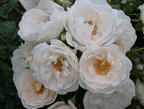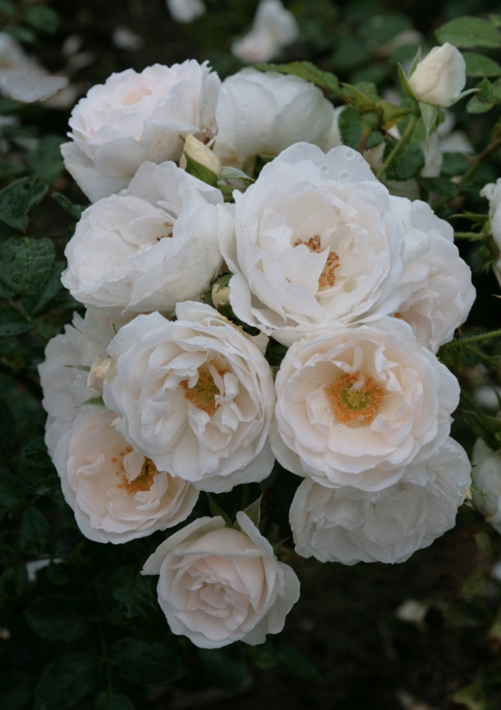leuchtend weiß, auffallende Staubgefäße, halbgefüllt