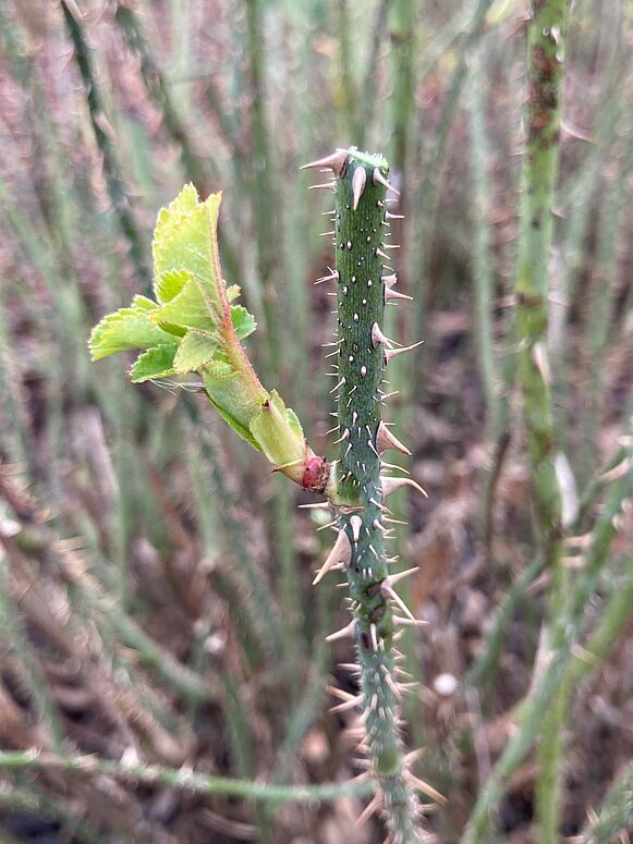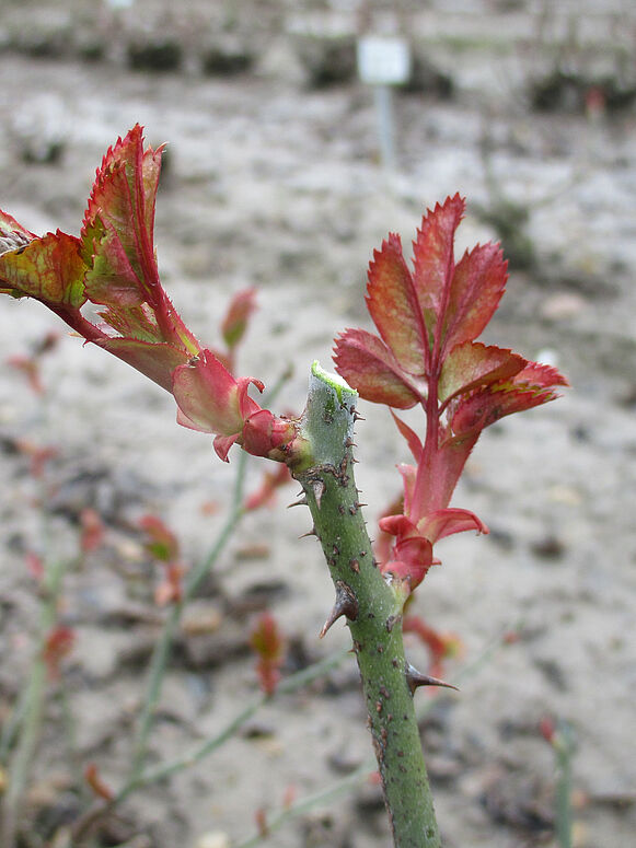 - Nachteil: Krankheiten und Schädlinge können auf Knospenschuppen, Blättern und Trieben der Rose überwintern und werden dadurch tendenziell gefördert